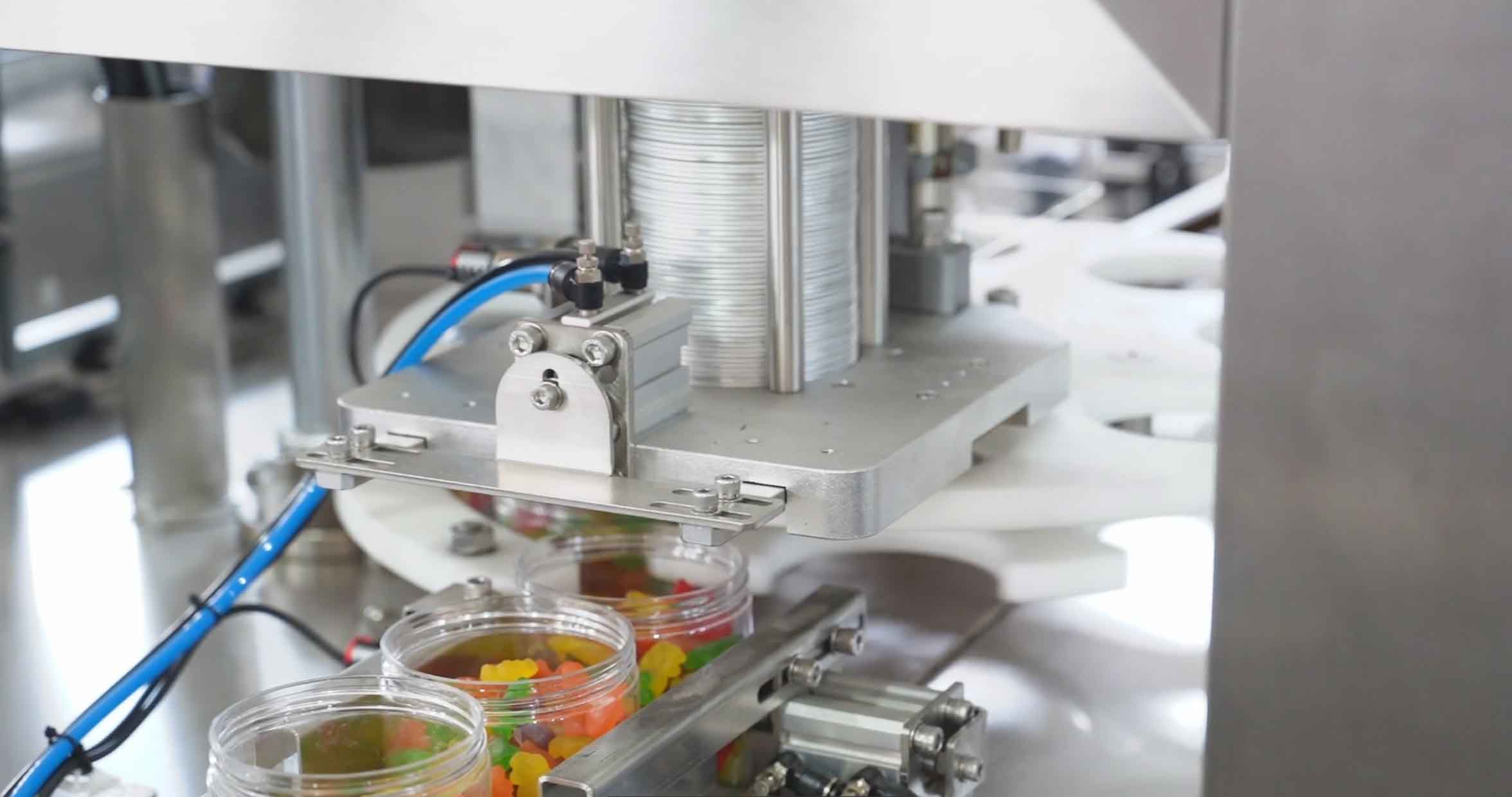 The weighing and inspection processes are equally critical and cannot be taken lightly.This ten-hand cheese scale features a 60° slide-style weighing design,which not only speeds up the process but also effectively controls the error within 0.5 grams, ensuring that each can of jellybeans has a precise and consistent wight.The equipment is also equipped with a thin-shaft removal system.The metal detector and checkweigher act as guardians of product quality, immediately removing any defective products once detected, leaving no room for nonconforming products to slip through. This ensures the quality of our products from the very beginning.